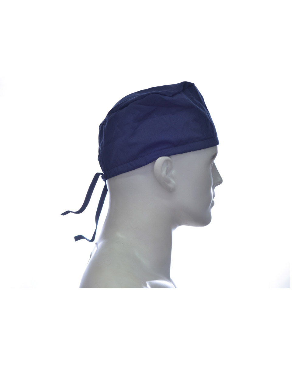 Gorro tipo médico en popelina, con tiras para ajustar atrás.