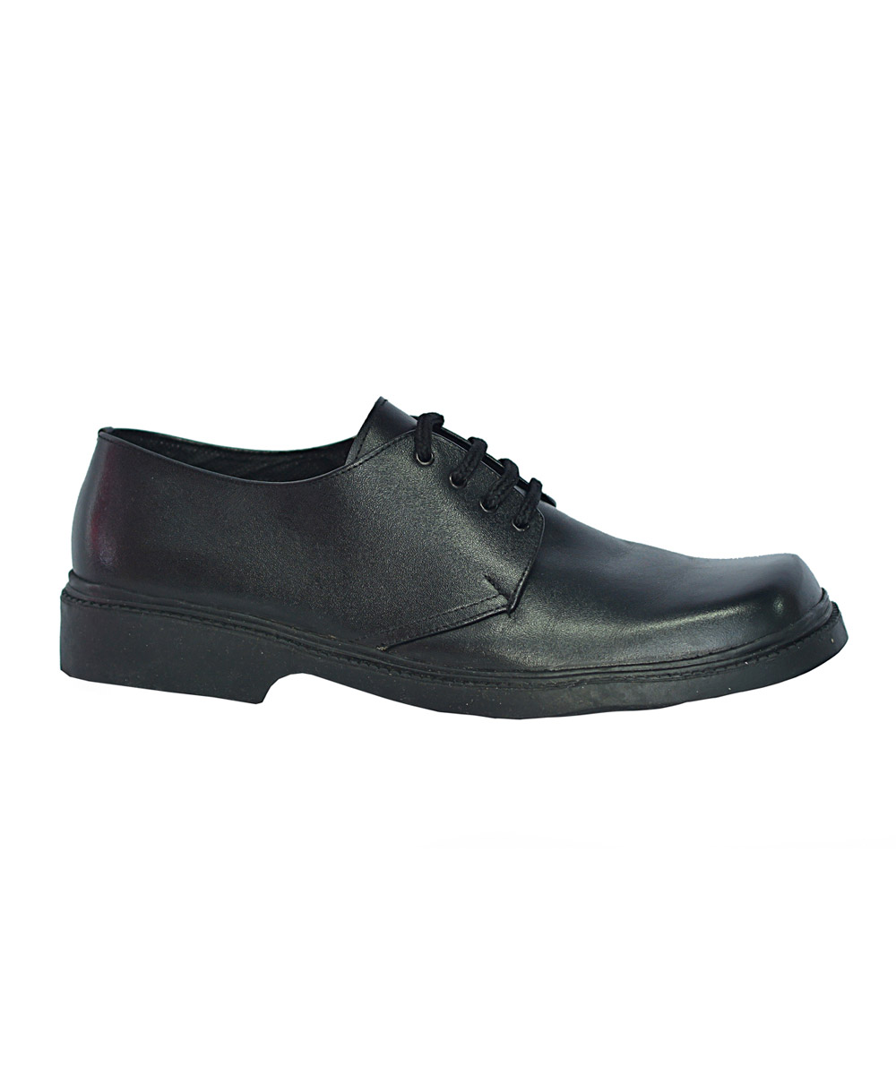 Zapato negro de hombre para oficina, capellada en cuero 14/16, forro en cabreta antitranspirante, plantilla interna en odena bondeada N° 2, suela en TR PVC o Spanson, refuerzo entre plantilla y suela en odena N°2, plantilla en produaire antitranspirante.